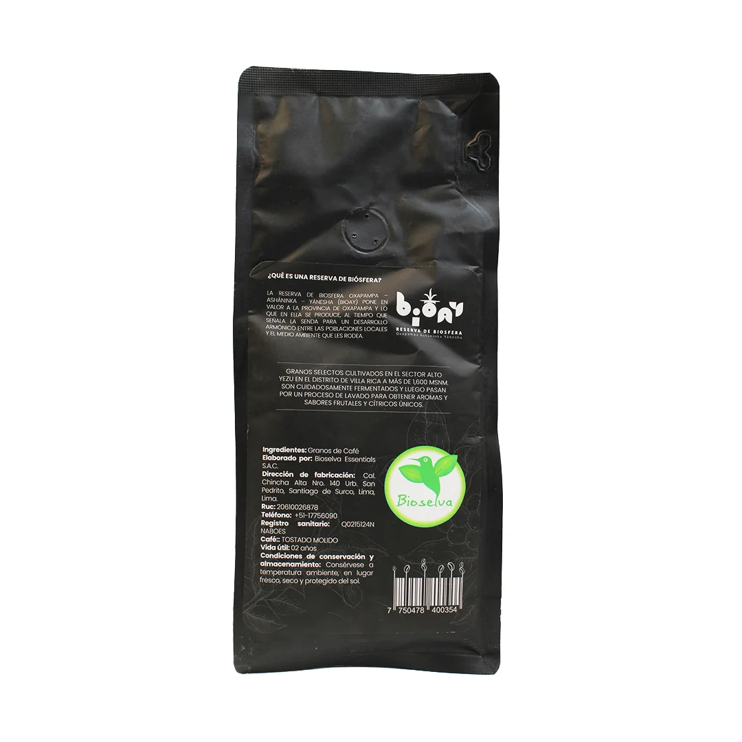 Bioselva es un café de especialidad que combina lo mejor de varias variedades selectas: Catimor, Típica, Pache y Bourbon, cultivadas en las fértiles tierras de Villa Rica, corazón cafetalero de Oxapampa.