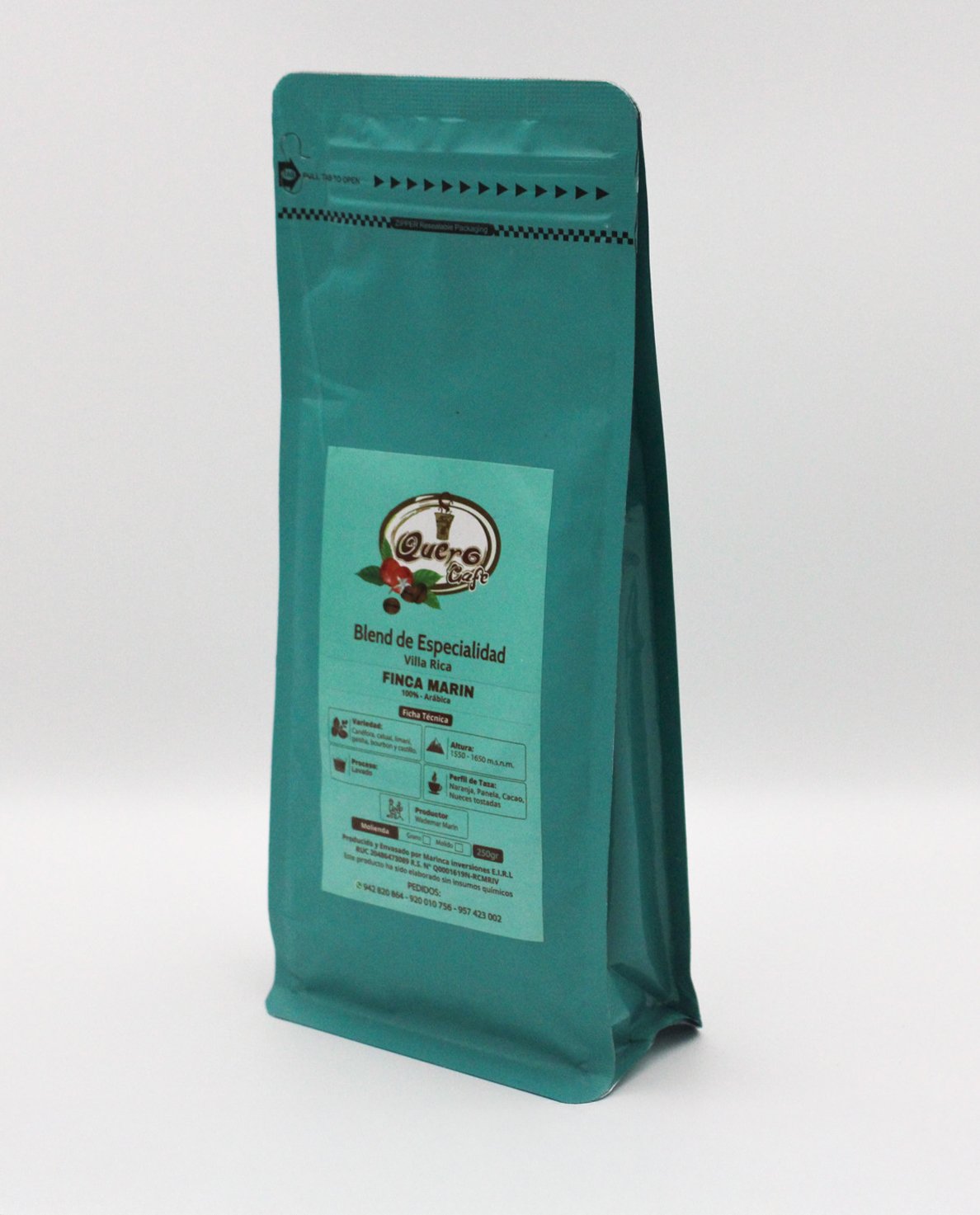 Quero Café nace del corazón de Villa Rica, en la provincia de Oxapampa, con la pasión y visión de la familia Marín, que por generaciones ha vivido el café. Su finca principal, Finca Marín, cultiva variedades selectas como Caturra, Catuai, Limaní y Gran Colombia a aproximadamente 1,650 metros sobre el nivel del mar, capturando la pureza de la naturaleza andina.